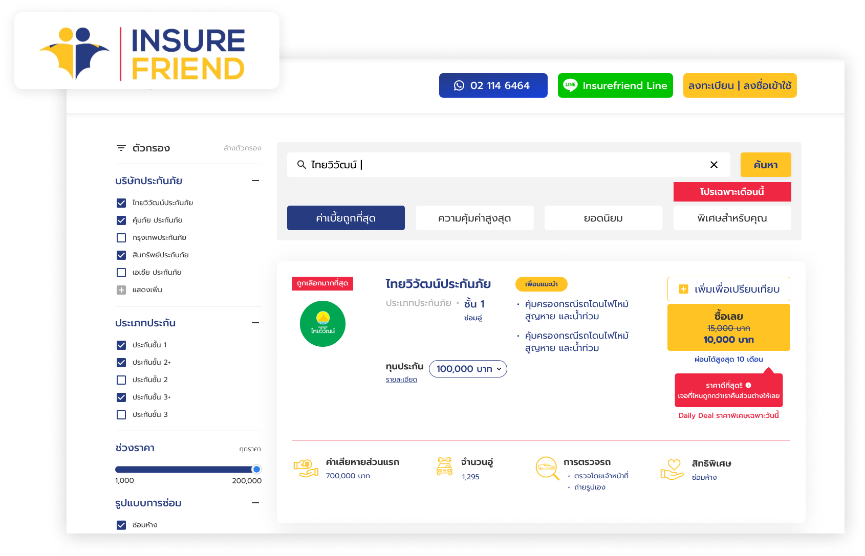 InsureFriend Broker Co., Ltd. has been providing automotive services for over 15 years. We are ready to provide insurance services, including car insurance, motorcycle insurance, life insurance, travel insurance, and other non-life insurance, to all customers in a one-stop service. We have a large base of customers who are confident in the quality of our products and services.